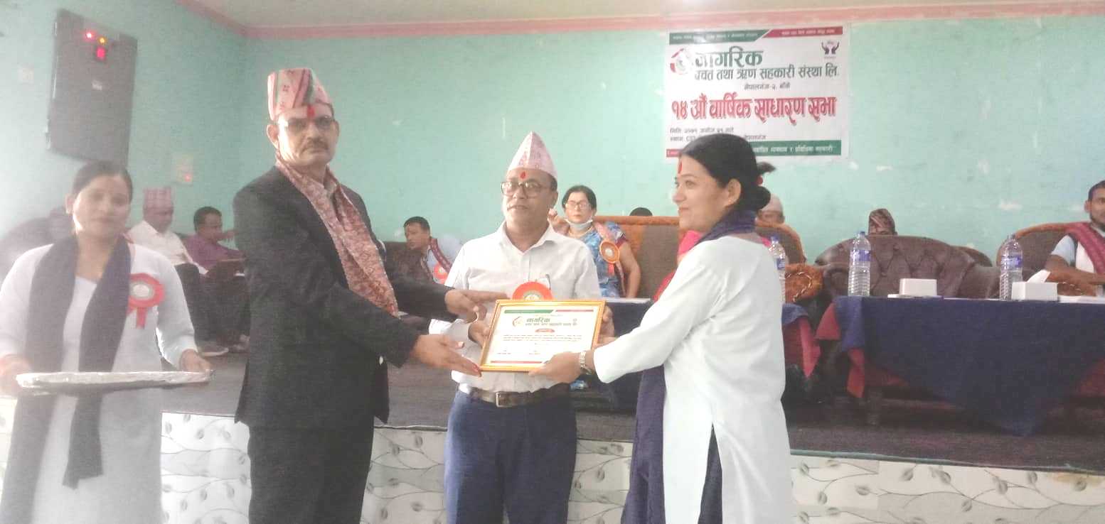 २९ असोज, बाँके । नागरिक बचत तथा ऋण सहकारी सस्था लिमिटेडको १४औँ बार्षिक साधारण सभा शनिबार सम्पन्न भएको छ ।नेपालगन्ज उप–महानगर पालिका वडा नम्बर २ बाँके रहेको सहकारीले ‘मर्यादित व्यवसाय र प्रविधिमा सहकारी ’ भन्ने नाराका साथ गरिएको साधारणस भामा आर्थिक वर्ष २०७८÷०७९ मा