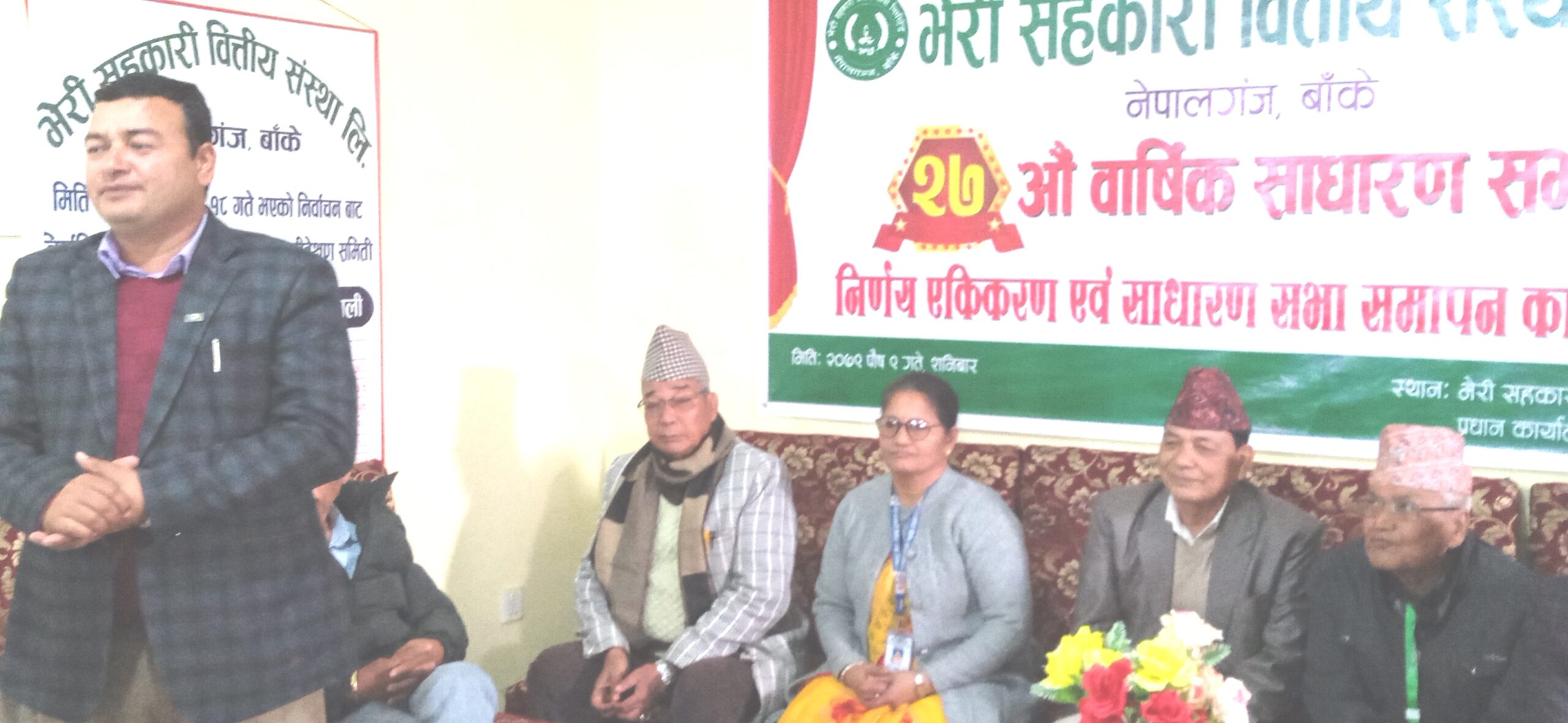 ०९ पौष, बाँके । भेरी सहकारी वित्तीय संस्था लिमीटेडको २७ औं वार्षिक साधारणसभा निर्णय एकिकरण एवम् समापन समारोह कार्यक्रम गरिएको छ । साधारणसभाका प्रमुख अतिथि जिल्ला सहकारी संघ बाँकेका अध्यक्ष ÷जिल्ला सहकारी संघ प्रदेशका अध्यक्ष प्रेम प्रसाद सुवेदी सहकारी सस्ंथाले पहिलाको भन्दा अहिले धेरै