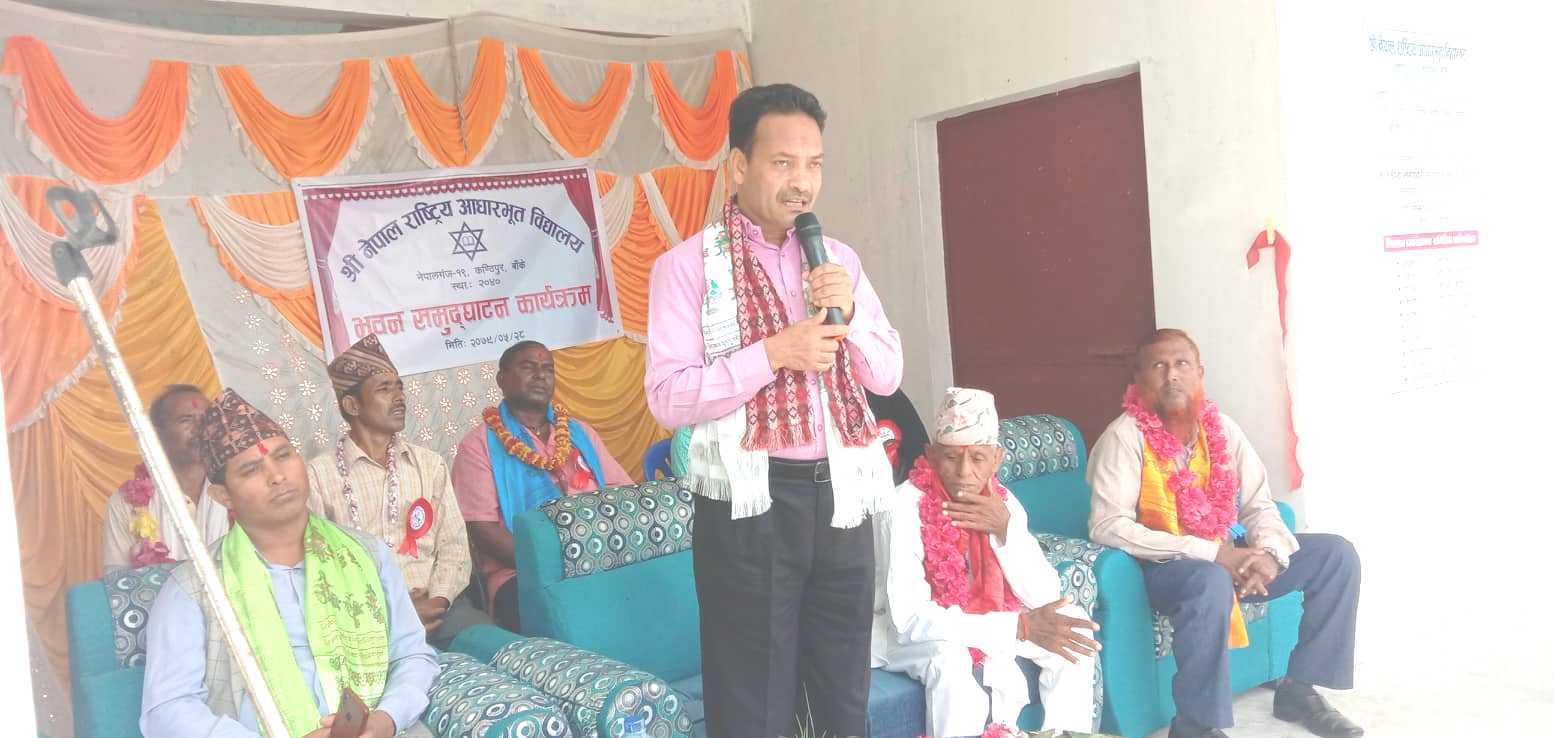 सलामत अलि शेष, नेपालगन्ज २८ भदौ । बाँकेको नेपालगन्ज उप–महानगरपालिका वडा नं. १९ कण्ठिपुरमा रहेको श्री नेपाल राष्ट्रिय आधारभूत विद्यालय भवन समुद्घाटन सम्पन्न गरिएको छ ।राष्ट्रिपति शैक्षिक सुधार कार्यक्रम अन्तरगत निर्मित विद्यालयको चार कोठे पक्की भवनको युवा तथा खेलकुद मन्त्री महेश्वर गहतराज