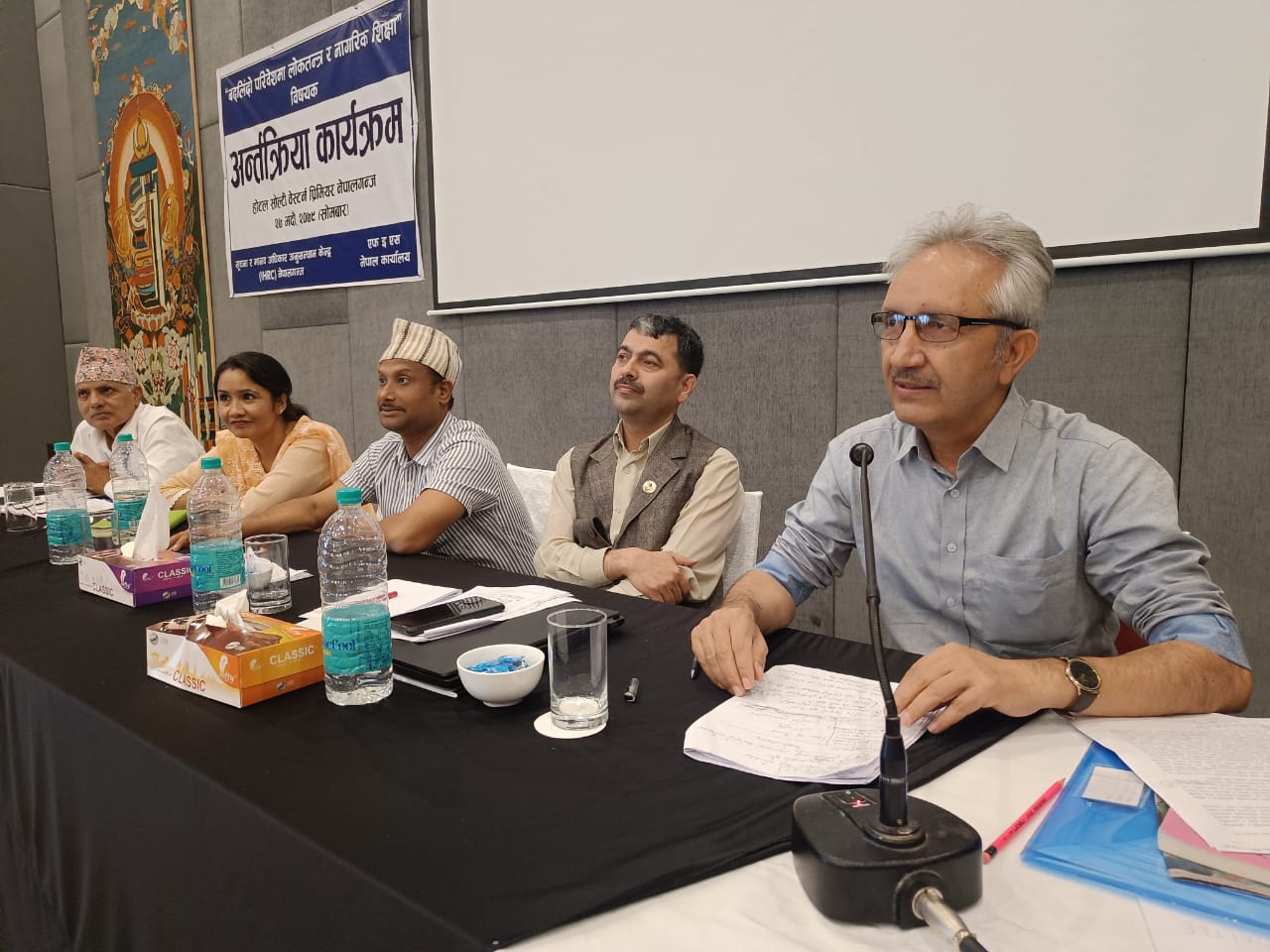 नेपालगन्ज २७ भदौ । नेपालका नागरिकले व्यवहारिक रुपमा लोकतन्त्रको अनुभुति गर्न नपाएको एक कार्यक्रममा बताइएको छ । जनताको ठुलो बलिदानी र संघर्षपछि स्थापना भएको लोकतन्त्रमा जनतालाई दुःख र राजनितिक दललाई मस्ती भएको भन्दै ऐतिहासिक रुपमा निमार्ण भएको संविधानको कार्यन्वयनमा चुनौती उत्पन्न भएको