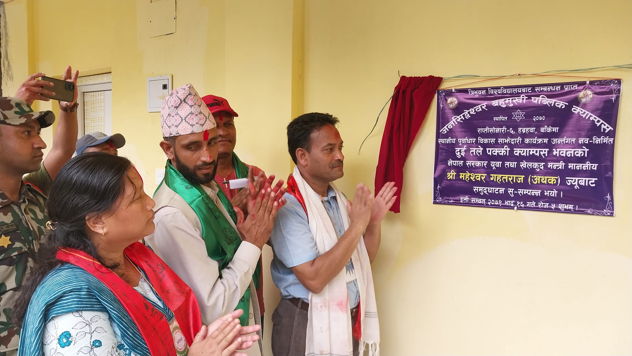 भाद्र १६, बाँके नेपाल सरकारका युवा तथा खेलकुद मन्त्री एवं बाँके क्षेत्र नं. १ का संघीय सांसद महेश्वर गहतराज (अथक) ले आफ्नो निर्वाचन क्षेत्रलाई शैशिक हबका रुपमा बिकास गर्ने उद्घोष गर्नुभएको छ । बिहिबार स्थानीय पुर्वाधार साझेदारी सांसद बिकास कोष अन्तर्गत निर्माण भएका विद्यालय