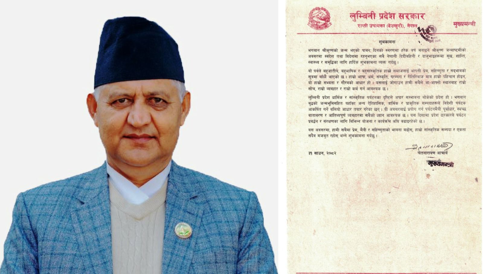 दाङ ३१ साउन । लुम्बिनी प्रदेशका मुख्यमन्त्री चेतनारायण आचार्यले लुम्बिनी धार्मिक र सांस्कृतिक पर्यटनका दृष्टिले अपार सम्भावना बोकेको प्रदेश भएको उल्लेख गर्दै भगवान बुद्धको जन्मभूमिसहित अन्य ऐतिहासिक, धार्मिक र प्राकृतिक सम्पदाले विदेशी पर्यटक आकर्षित गर्ने बलियो आधार तयार भएको बताउनुभएको छ । श्रीकृष्ण जन्माष्टमीको