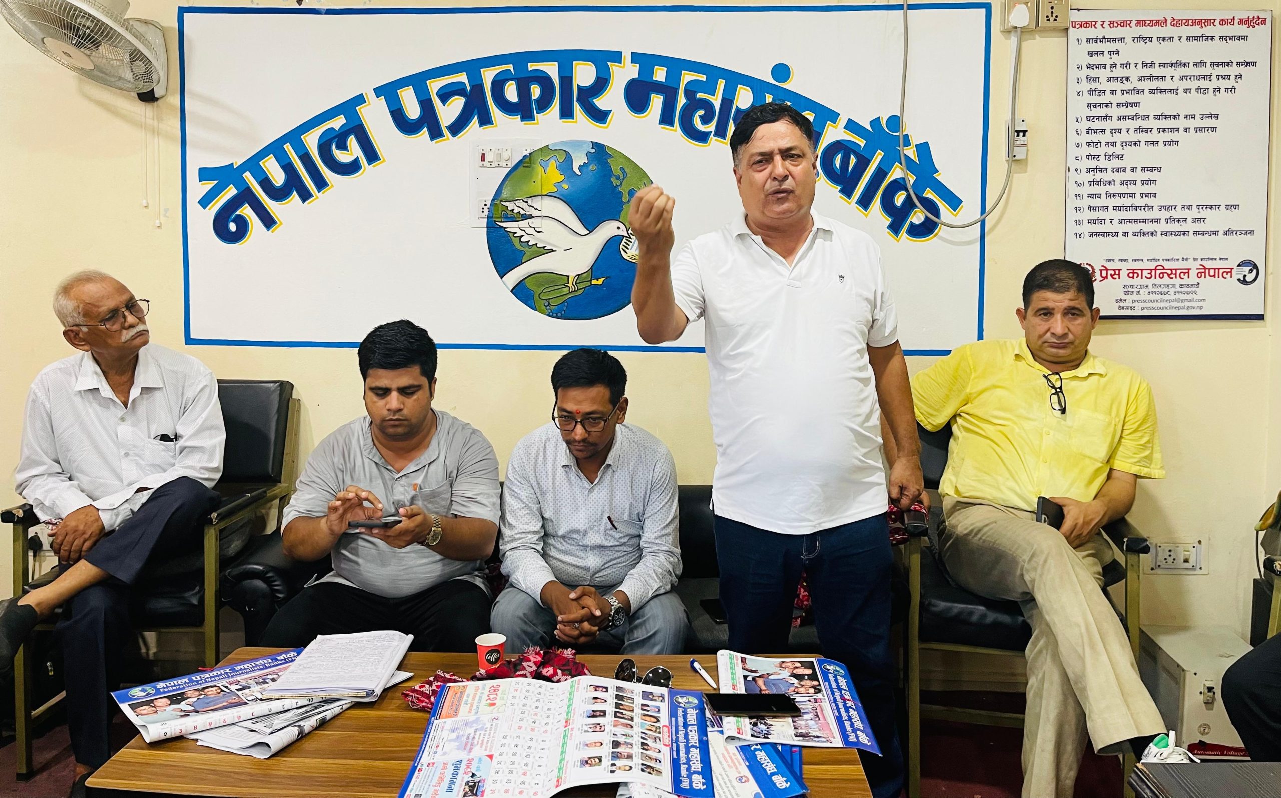 नेपालगञ्ज १६ साउन । नेपाल पत्रकार महासंघका कार्यबहाक अध्यक्ष दीपक आचार्यले यथास्थितिमा मिडिया काउन्सिल विधेयक नमान्ने स्पष्ट पार्नुभएको छ । विधेयकका धेरै बुँदामा नेपाल पत्रकार महासंघको असहमति रहेको भन्दै आचार्यले सच्चिएर नआए नमान्ने स्पष्ट पार्नुभयो । नेपाल पत्रकार महासंघ बाँके शाखाले शुक्रबार नेपालगञ्जमा आयोजना