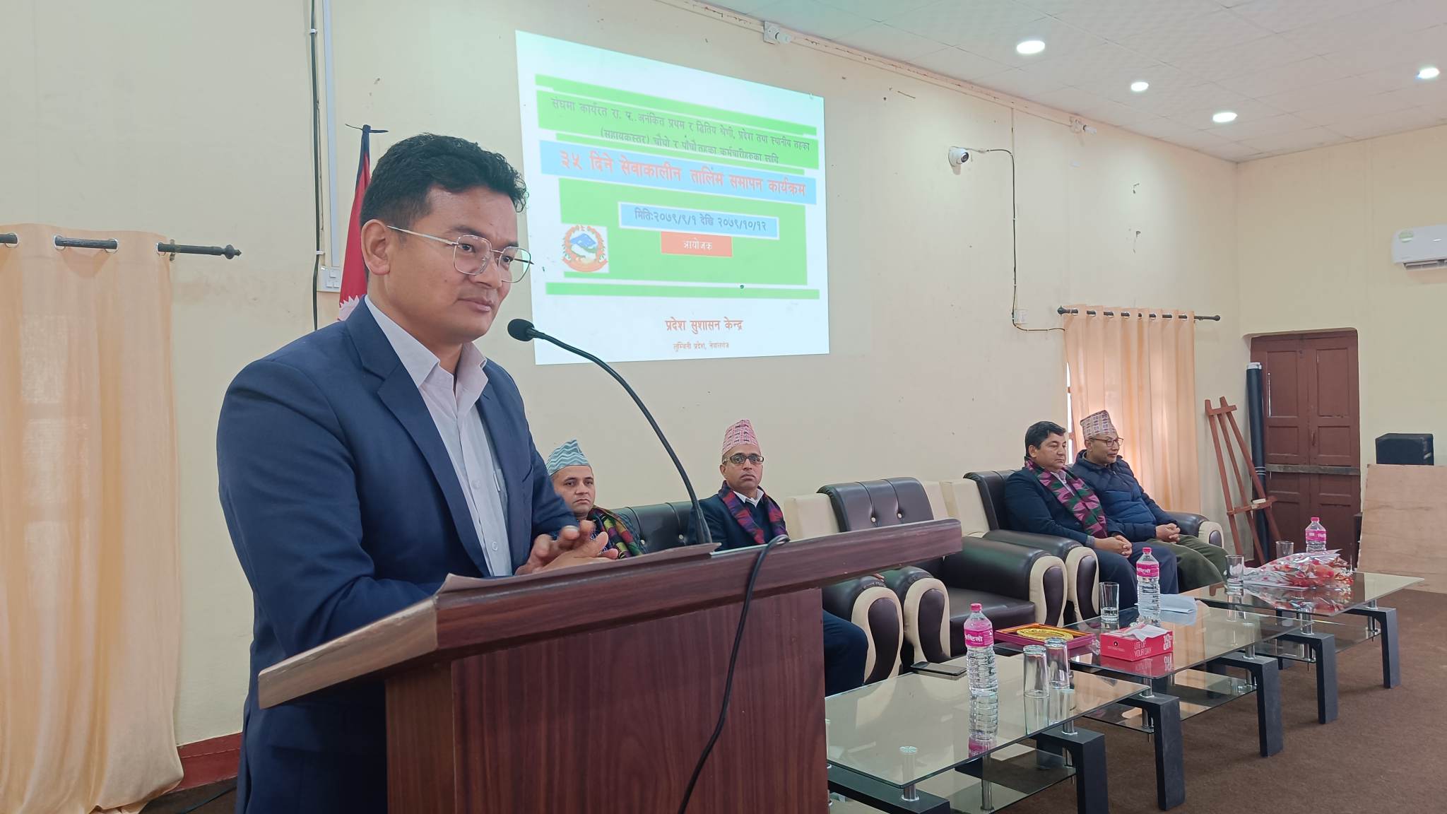 नेपालगन्ज १२ माघ । सहायकस्तर कर्मचारीहरुका लागि ३५ दिने सेवाकालिन तालिम सकिएको छ । लुम्विनी प्रदेश मुख्यमन्त्री तथा मन्त्रीपरिषद कार्यालय प्रदेश सुशासन केन्द्र बाँकेले संघ, प्रदेश र स्थानीय तहमा कार्यरत सहायकस्तरका कर्मचारीहरुलाई ३५ दिने तालिम प्रदान गरेको छ । आज एक कार्यक्रमका विच