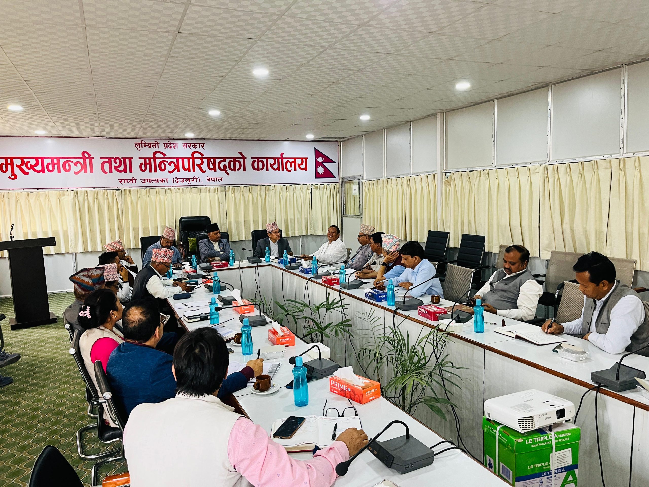 दाङ १७ बैशाख । लुम्बिनी प्रदेश सरकारको मन्त्रिपरिषद् बैठक बुधवार सम्पन्न भएको छ । मुख्यमन्त्री चेतनारायण आचार्यको अध्यक्षतामा बसेको बैठकले तीन वटा महत्वपूर्ण निर्णयहरू गरेको सरकारका प्रवक्ता तथा कृषि, भूमि व्यवस्था तथा सहकारी मन्त्री दिनेश पन्थीले जानकारी दिनुभएको छ । बैठकले प्रदेश सचिवहरूको जिम्मेवारी