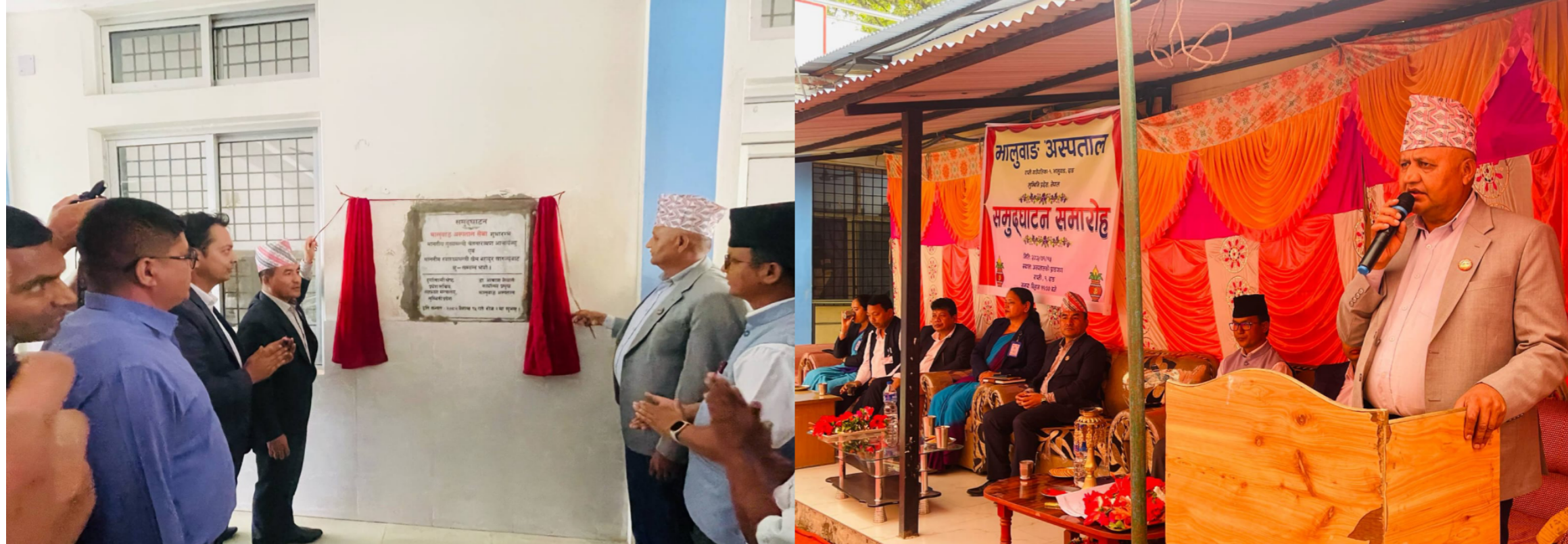 भालुबाङ १५ बैशाख । लुम्बिनी प्रदेशका मुख्यमन्त्री चेतनारायण आचार्यले भालुबाङ अस्पतालको उद्घाटन गर्नुभएको छ । उपस्वास्थ्य चौकी, स्वास्थ्य चौकी, प्रस्तावित अस्पताल हुँदै भालुबाङ अस्पताललाई ५० शैयामा स्तरोन्नति गरिएको हो । प्रस्तावित भालुबाङ अस्पतालले अस्पतालको रूपमा मान्यता पाएपछि सोमबार मुख्यमन्त्री आचार्यले उद्घाटन गर्नुभएको हो ।