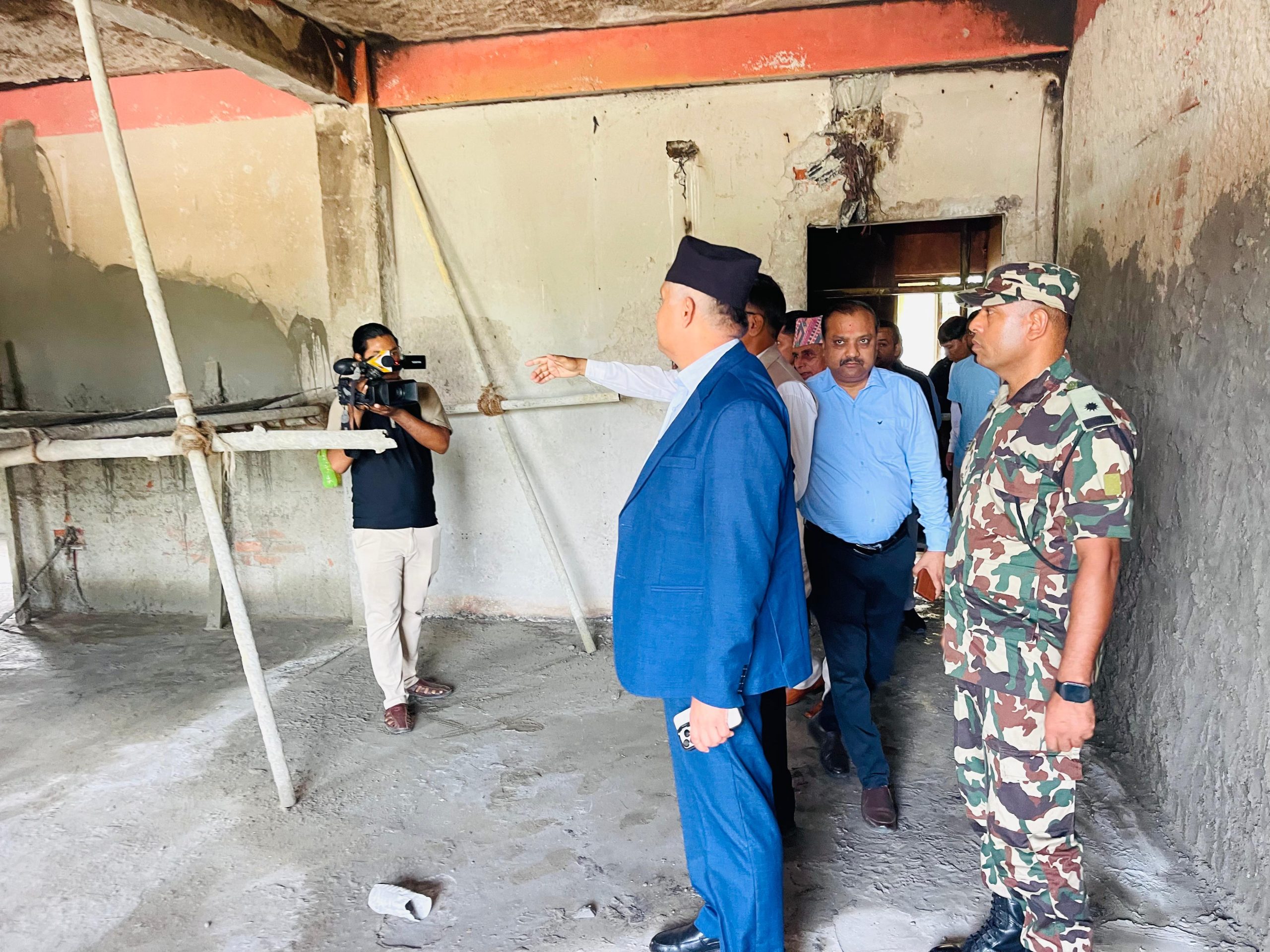 नवलपरासी १० असाेज । लुम्बिनी प्रदेशका मुख्यमन्त्री चेतनारायण आचार्यले जेन-जीको आन्दोलनका कारण पश्चिम नवलपरासी जिल्लामा प्रभावित भएका सरकारी कार्यालय, व्यवसायिक भवन तथा निजी घरहरूको शुक्रबार अनुगमन गर्नुभएको छ । भदौ २३ र २४ गतेको आन्दोलनमा आगजनी र तोडफोड भएर प्रभावित भएका कार्यालयहरूको सेवा प्रवाहलाई