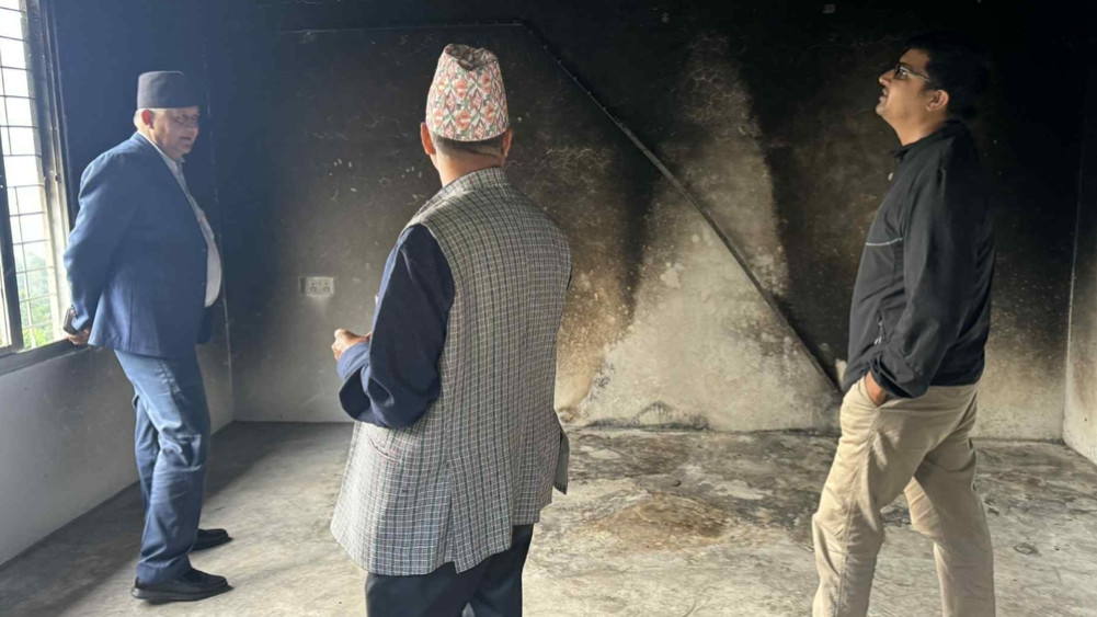 प्यूठान ०४ असाेज । लुम्बिनी प्रदेशका मुख्यमन्त्री चेतनारायण आचार्यले प्यूठान जिल्लामा आगजनीमा परेका कार्यालयहरूको अनुगमन गर्नुभएको छ । अर्घाखाँची जिल्लाको अनुगमन सकेर मुख्यमन्त्री आचार्य शनिबार नै प्यूठान पुगेर त्यहाँको अवस्थाबारे जानकारी लिनुभएको हो । नेकपा एमाले, नेपाली कांग्रेस र राष्ट्रिय जनमोर्चाका पार्टी कार्यालयहरूको अनुगमनका