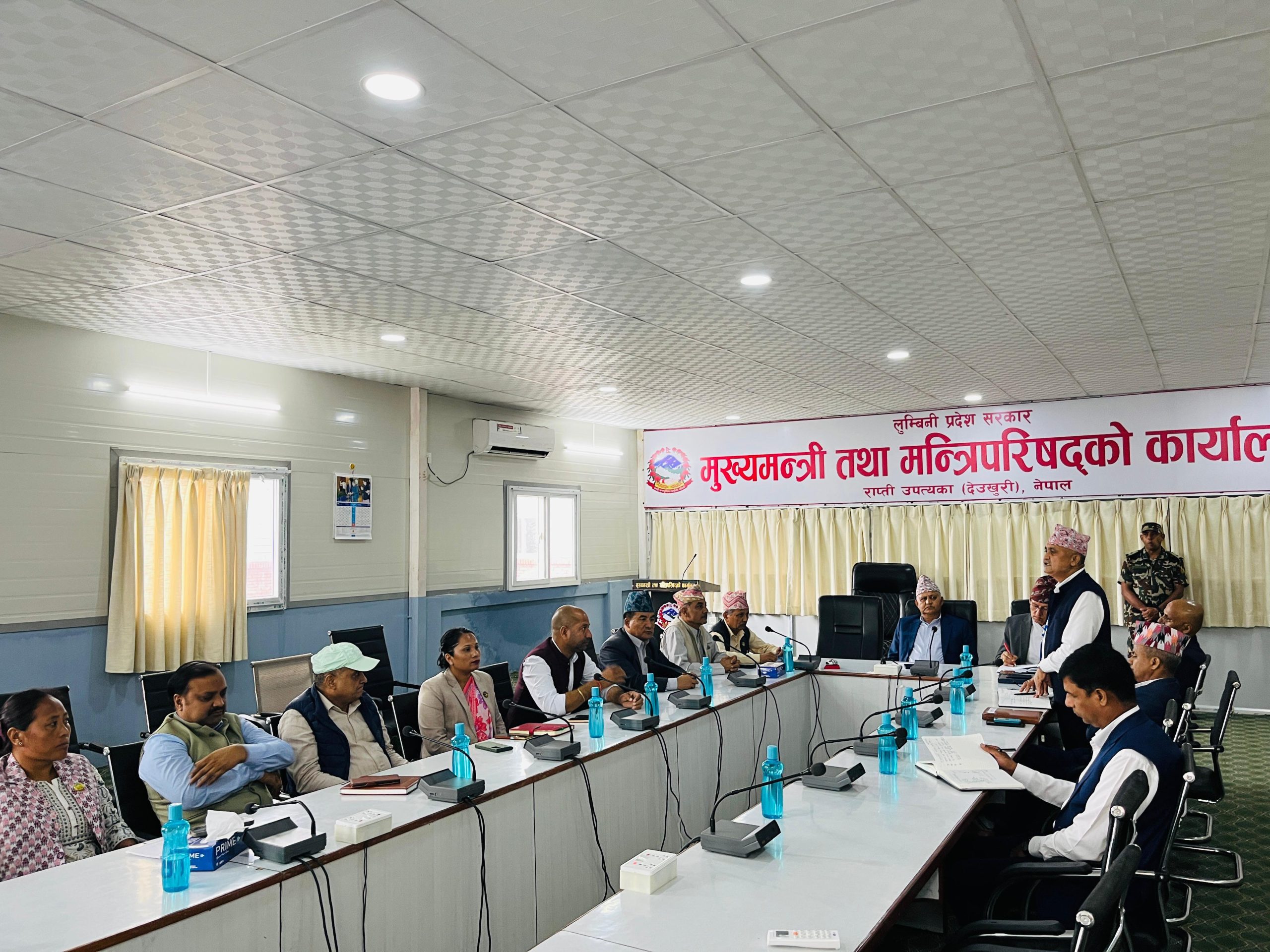 दाङ ०४ असाेज । लुम्बिनी प्रदेशका मुख्यमन्त्री चेतनारायण आचार्यले सेवा प्रवाहमा कुनै प्रकारको ढिलासुस्ती नगर्न मातहतका नियन्त्रकहरुलाई निर्देशन दिनुभएको छ । विभिन्न मन्त्रालयका मन्त्री, प्रमुख सचिव, सचिवहरुको उपस्थितिमा बिहिवार मुख्यमन्त्री तथा मन्त्रीपरिषद्काे कार्यालय राप्ती उपत्यका(देउखुरी)मा बसेको लुम्बिनी प्रदेश विपद् व्यवस्थापन परिषद्को बैठकलाई सम्बोधन गर्दै