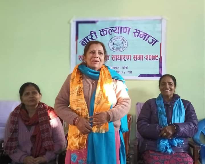 नेपालगन्ज २५ पुष । नारी कल्याण समाज बाँकेको २९औं बार्षिक साधारणसभा सम्पन्न गरिएको छ । संस्थाका अध्यक्ष नारायणी रुपाखेतीको सभापतित्व र पुर्ब अध्यक्ष कमला भट्टको प्रमुख आथित्यमा सम्पन्न भएको छ । संस्थामा आ.व.२०७८÷०७९ मा भएको आर्थिक कारोबारलाई समेटी तयार पारिएको आर्थिक प्रतिबेदन कोषाध्यक्ष बिमला