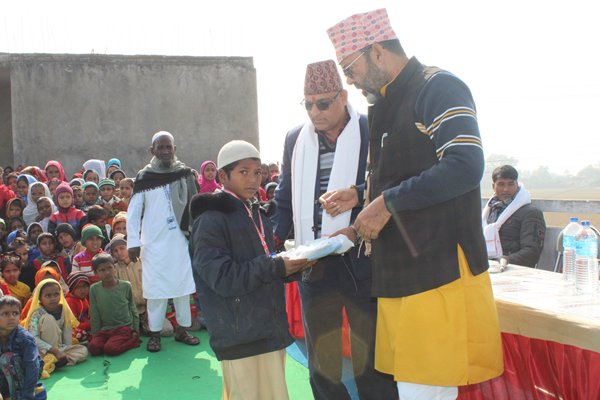 नरैनापुर (बाँके) पुस १९ । नरैनापुर २ मा रहेको मदरसा सिराजिया इशरारुल उलुममा अध्ययनरत विद्यार्थीहरुलाई विद्यालय पोशाक वितरण गरिएको छ । मदरसाका अध्यक्ष शैयद मुस्ताक अहमद शाहले विद्यालयमा अध्ययनरत विद्यार्थीहरुलाई पोशाक वितरण गरेका हुन् । मुस्लिम समुदायका विद्यार्थीको बाहुल्यता रहेको सो विद्यालयमा अध्ययनरत प्रत्येक