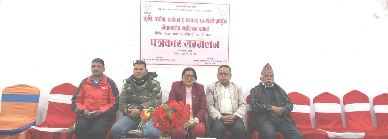 १५ पौष, बाँके । नेपाल घरेलु तथा साना उद्योग महासंघ बाँकेको र सिवालय सेक्युरिटि एण्ड मल्टिपल प्रा। लि। बाँकेको संयुक्त आयोजनामा नेपालगञ्जमा प्रादेश स्तरिय नेपालगञ्ज लघु घरेलु, कृषि, पर्यटन महोत्सव हुनेभएको छ । नेपाल घरेलु तथा साना उद्योग महासंघले शुक्रबार आयोजना गरेको पत्रकार सम्मेलनमा