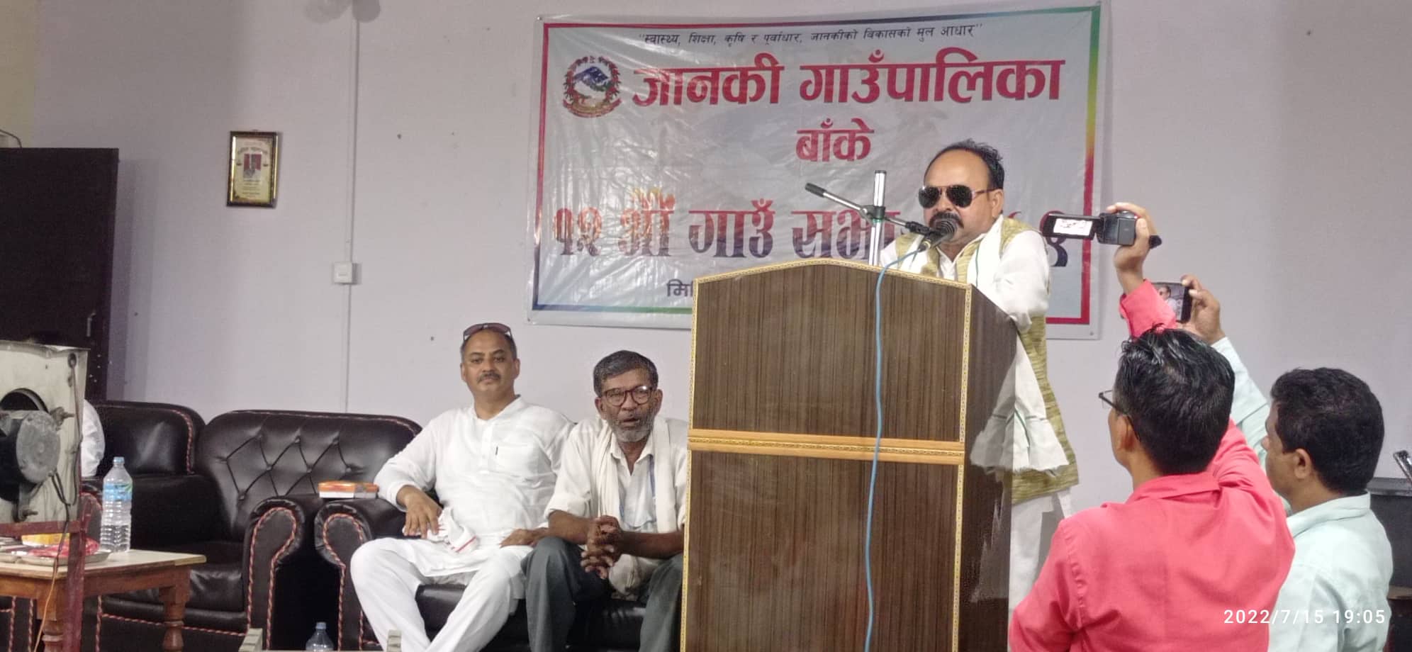 गाउँसभामा अध्यक्ष खाँले जानकीको विकास र समृद्धि नै आफ्नो एक मात्र लक्ष्य भएको भन्दै सबैलाई समेटेर आफू अगाडि बढ्ने बताए । उनले शिक्षा, स्वास्थ्य, कृषि र पूर्वाधारलाई प्राथमिकता दिएर बजेट विनियोजन गरिएको बताए । गाउँसभामा नेपाली कांग्रेसका महासमिति सदस्य लक्ष्मीनारायण शाहले जानकीको विकासका लागि दलीय प्रभाव भन्दा माथि उठेर काम गर्न आग्रह गरे ।