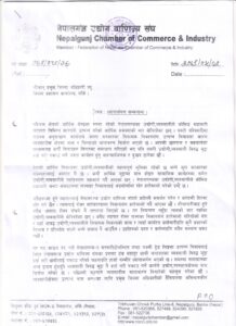 पश्चिम क्षेत्रको आर्थिक केन्द्रका रुपमा रहेको नेपालगन्जका उद्योगी,व्यवसायीले कोभिड महामारी लगायत बिभिन्न कारणले उत्पन्न गरेको आर्थिक समस्याको मार खेपिरहेका छन् । यस्तो परिस्थतीमा राजश्व अनुसन्धान कार्यालय जस्ता सरकारका नियामक निकायसंग उत्पन्न बिवादका कारण व्यवसायीक क्षेत्रमा त्रास र चिन्ताको वातावरण सिर्जना भएको छ । आपसी छलफल र सहकार्यको माध्यमबाट कयौं विवादहरु बिगतमा समाधान गरिएको भए पनि यसरी उद्योगी,व्यवसायी बिरुद्ध मुद्दा दर्ता गरी पक्राउ गर्ने जस्ता कार्यहरु हुनु आश्चार्यजनक र दुःखद ठानेका छौं ।