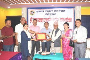 हरि जमुना स्वतन्त्र पत्रकारीता पुरस्कार पत्रकार राम प्रसाद आचार्यलाई प्रदान गरीएको छ । शिक्षक तथा समाजसेवी माधबी शाहले स्वतन्त्र पत्रकार संघ नेपाल बाँके शाखा मार्फत आफ्नो स्वर्गीय माता पिताको नामबाट स्थापना गरेको हरी जमुना स्मृती अक्षय कोष मार्फत उक्त पुरस्कार प्रदान गरिएको हो । स्वतन्त्र पत्रकार संघ नेपाल बाकेको आयोजनामा सम्पन्न एक विशेष समारोहका बिच पत्रकार आचार्यलाई हरि जमुना स्वतन्त्र पत्रकारीता पुरस्कार प्रदान गरिएको स्वतन्त्र पत्रकार संघ नेपाल बाँके शाखाका अध्यक्ष नमस्कार शाहले बताए । त्यसैगरी सृजनसिल पत्रकारीता पुस्कार युवा पत्रकार निशु जोशिलाई प्रदान गरीएको छ । स्वतन्त्र पत्रकार संघ नेपाल बाके शाखाले हरेक वर्ष प्रदान गर्दै आएको पुरस्कार यस वर्ष पत्रकार जाशीलाई प्रदान गरिएको हो ।पुस्कृत पत्रकार द्वयलाई स्वतन्त्र पत्रकार संघका राष्ट्रिय अध्यक्ष कृष्ण प्रसाद बास्तोला, राष्ट्रिय उपाध्यक्ष निरज गौतम, बाँके शाखा अध्यक्ष नमस्कार शाह, वष्ठि पत्रकार पुर्णलाल चुके लगायतले नगद रासी रु. ५ हजार १ सय ५१ सहित सम्मान पत्र र दोसल्लाले सम्मान गरेका थिए । पुरस्कार प्रदान कार्यक्रममा बोल्दै कार्यक्रमका प्रमुख अतिथी तथा स्वतन्त्र पत्रकार संघ नेपालका राष्ट्रिय अध्यक्ष कृष्ण प्रसाद बास्तोलाले स्वतन्त्र पत्रकारहरुले महाभारत मा नारद मुनिले भगबान राम र राबण सङ गरेको काम जस्तै कसैको पक्ष र विपक्ष नलिएर सत्य तथ्य खबर आदान प्रदान गर्नु पर्ने बताए । पत्रकारिता क्षेत्रमा भाषगत शुद्धाशुद्धिमा खडेरी परेको बताउदै भाषागत शुद्धता प्रती पत्रकारले विशेष ख्याल गर्नु पर्ने बास्तोलाको भनाइ तियो ।