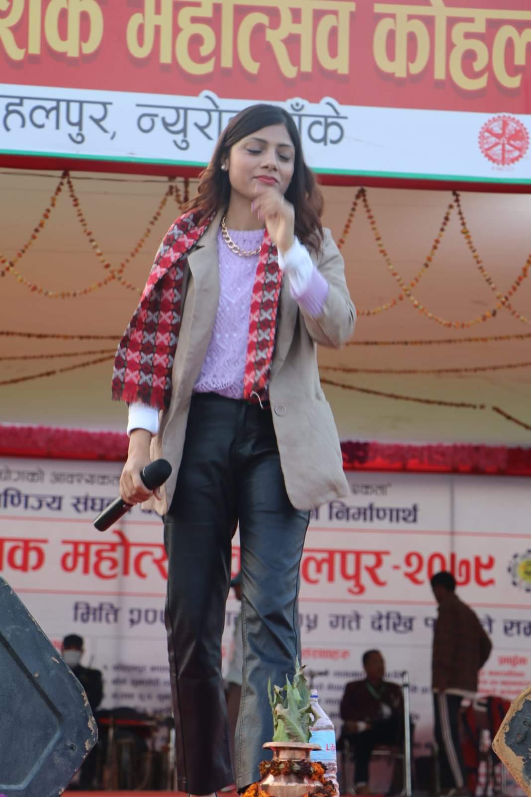 बाँकेको कोहलपुर नगरपालिकामा जारी लुम्बिनी प्रादेशिक महोत्सवमा नेपाल आइडलबाट उदाएकी अस्मिता अधिकारी सहित हास्यव्यंग्य कलाकारहरुले प्रस्तुती दिएका छन् । महोत्सवको सातो दिन चर्चित गायिका अधिकारीले कोहलपुर महोत्सवमा आएका दर्शक आकर्षण गरेकी थिइन् । अधिकारीले को होला त्यो, तिम्रो घरको वरीपरी, लजावती फूलजस्तै लजाउँछौँ लगायतका गीत सुनाएकी थिइन् । यस्तै कोहलपुर महोत्सवमा सातौ दिन सुरेन्द्र के.सी. (मुला साग),जोगिन्दरपान वाला र गायक डिजराज पौडलले आफ्नो प्रस्तुती दिएका दिए । महोत्सवको सातौ दिन ६ हजार टिकट बिक्रि भएको थियो भने कूल ४० लाख कारोबार भएको कोहलपुर उद्योग वाणिज्य संघका अध्यक्ष लक्ष्मणराज पौडेलले बताए ।