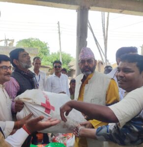 राहत सामग्री वितरण गर्दै नरैनापुर गाउँपालिका अध्यक्ष इस्तियाक अहमद शाहले रेडक्रसको सहयोग उल्लेखनीय रहेकोे प्रशंसा गर्दै विपद्बाट प्रभावितलाई तत्काल पालिकाबाट खाद्य बस्तु र रेडक्रसबाट गैर खाद्य राहत सामग्री वितरण गरिएको बताउनु भयो ।