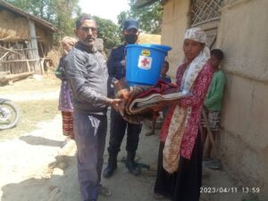 आगलागी प्रभावित परिवारलाई स्थानीय तह र नेपाल रेडक्रसले क्रमशः खाद्य र गैरखाद्य राहत सामग्री वितरण गरेको छ ।