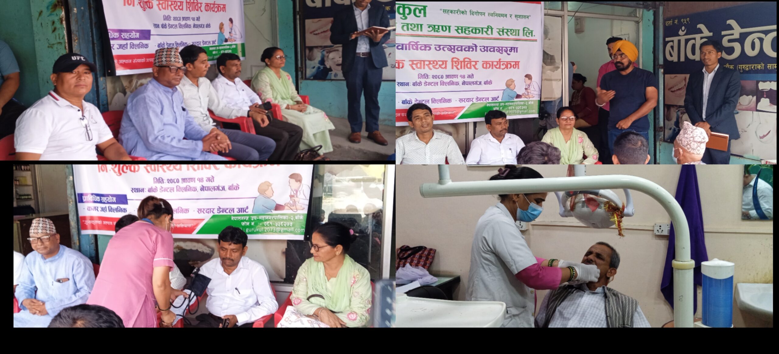 गुरुकुल बचत तथा ऋण सहकारी संस्था लि.को १४ औं वार्षिक उत्सवको अवसरमा निःशुल्क स्वास्थ्य शिविर कार्यक्रम आइतबार सम्पन्न गरिएको छ ।’सहकारीको दिगोपन स्वनियमन र सुशासन” भन्ने मुल नाराका साथ प्राविधिक सहयोगमा कमर जहाँ क्लिनिक, बाँके डेन्टल क्लिनिक,सरदार डेन्टल आर्ट रहेको छ । १४ औं वार्षिकत्सवको अवसरमा गाईनाे १०, डेन्टल ६५ , सुगर १९ जना बढीले स्वास्थ्य परिक्षण गरिएकाे छ ।